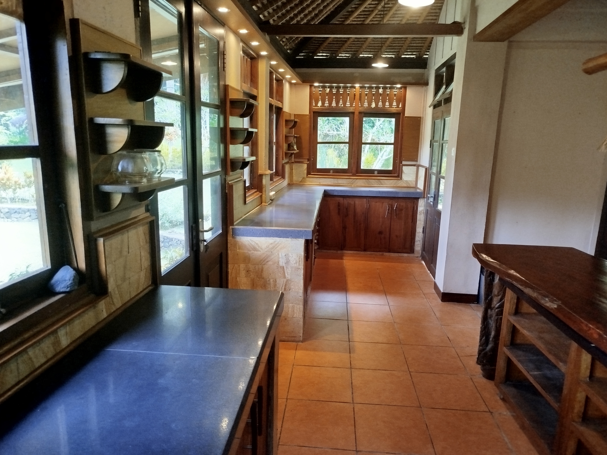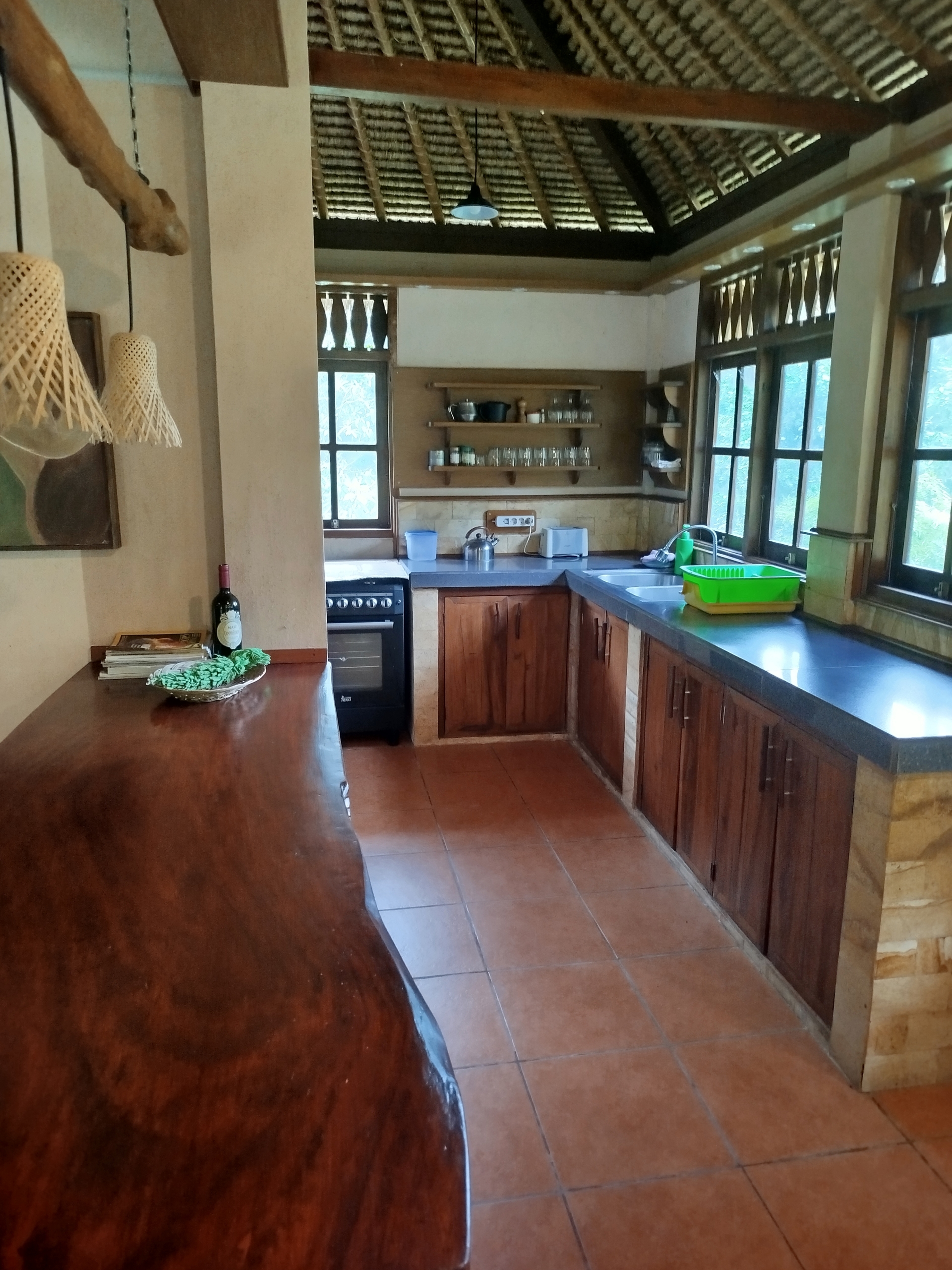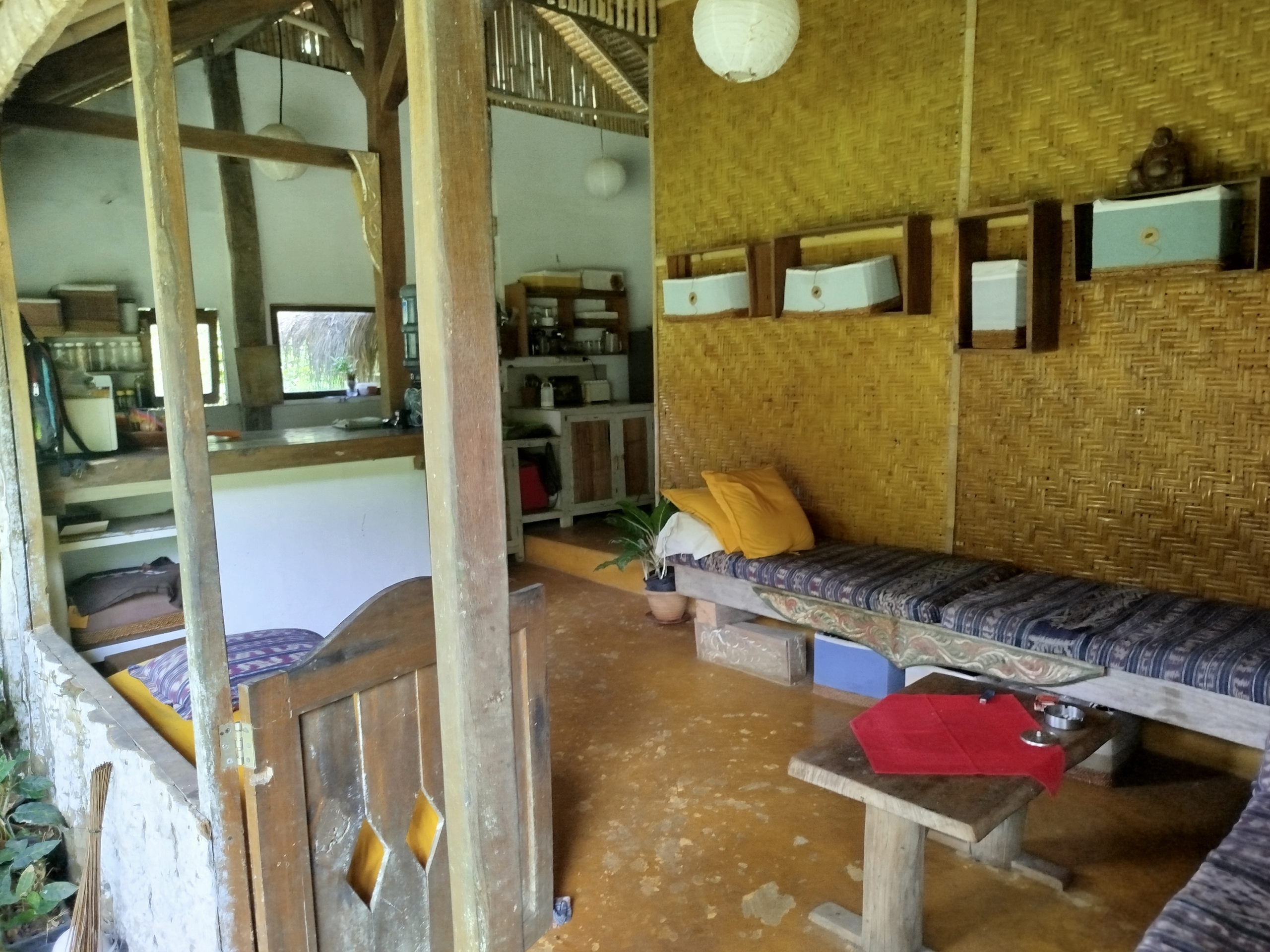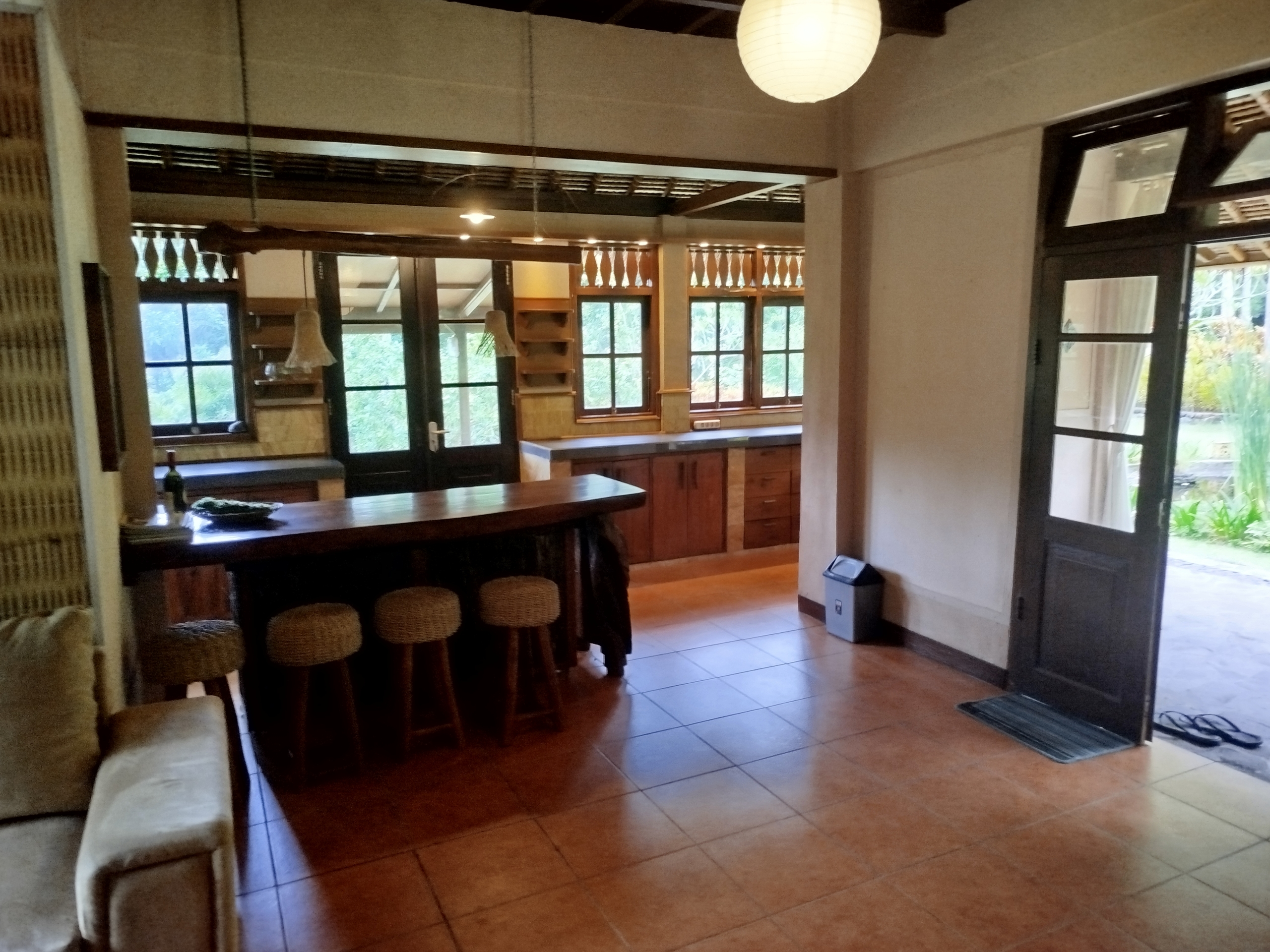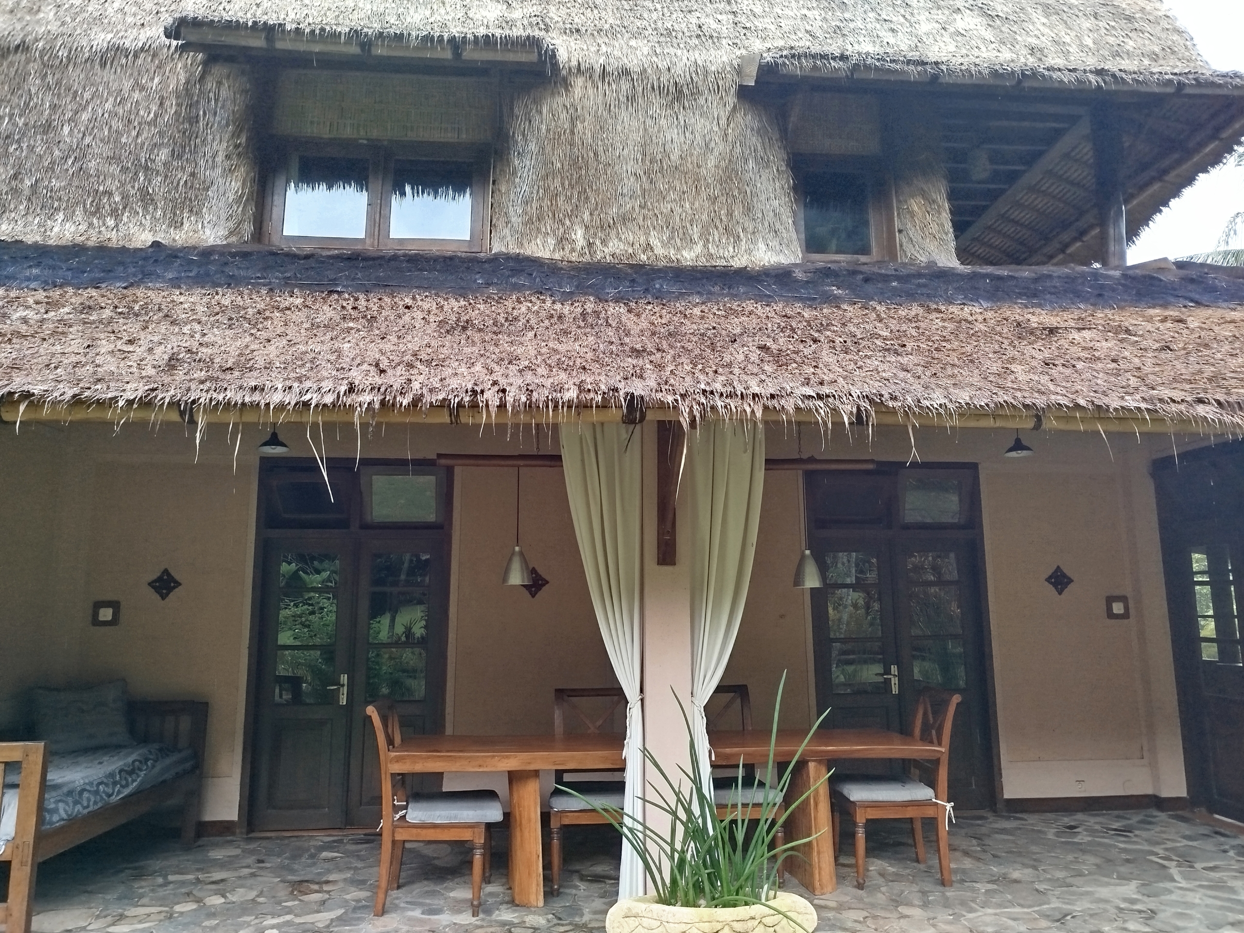 The estate includes three character-filled structures, all timber-framed with traditional alang-alang roofing, blending naturally into the environment.